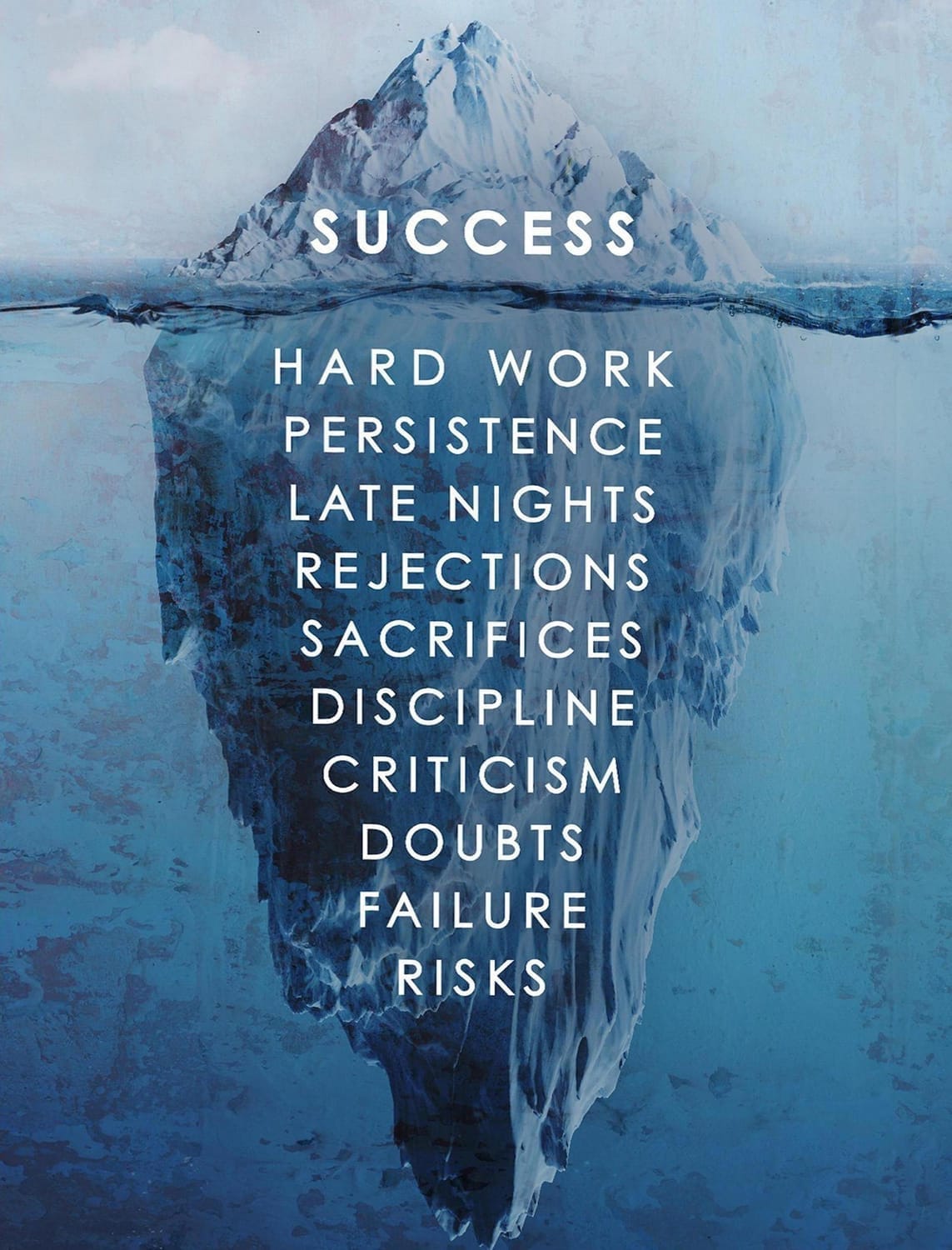 Studia i successi e i fallimenti dei migliori imprenditori e persone di successo e non fermarti solo all’apparenza (la punta dell’iceberg).
